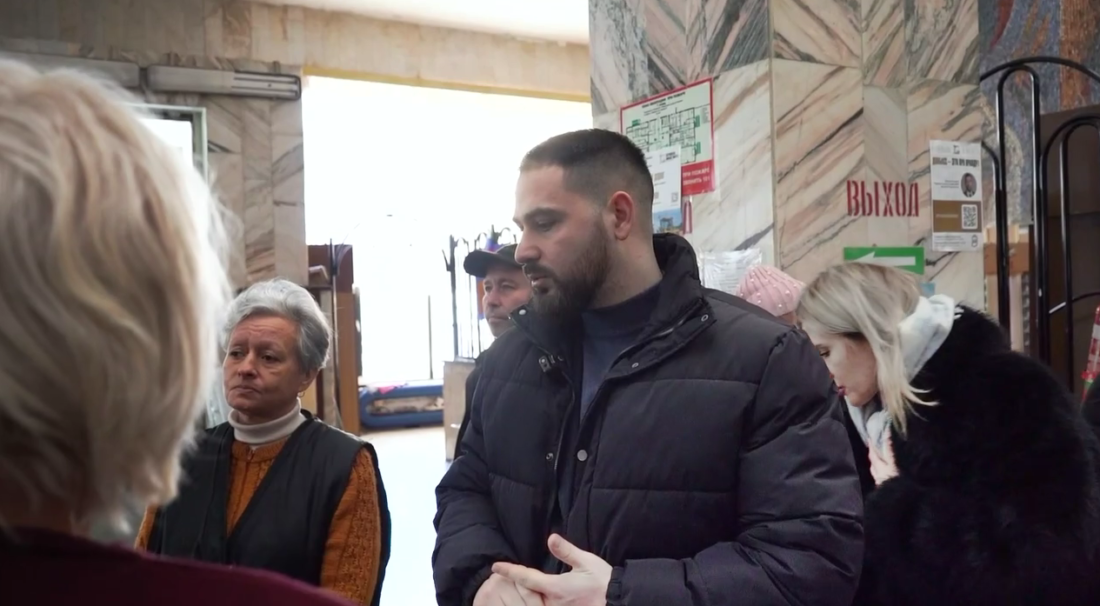 Де саме проживають люди, не повідомляють. Однак з кадрів можна зробити припущення, що люди продовжують жити в будівлі місцевого басейну. Тут вони мешкають четвертий рік. Раніше окупаційна адміністрація обіцяла вирішити проблему розміщення і, нібито, відремонтувала для цього будівлю закинутої поліклініки трубного заводу. Ремонт, начебто, провели, а людей так і не заселили, вони продовжують мешкати в басейні.