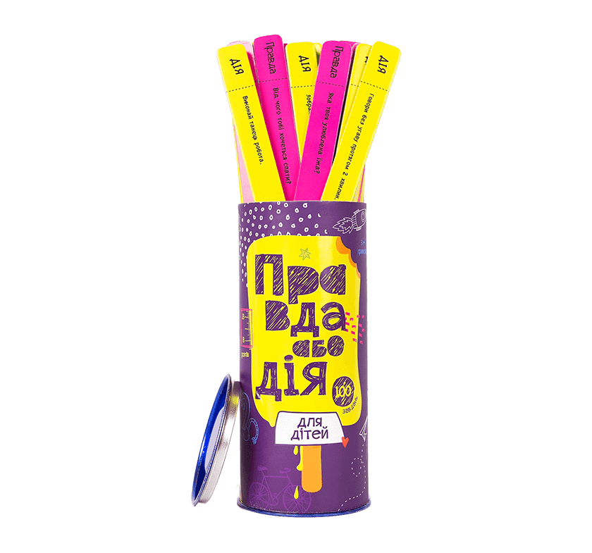 А якщо ваші діти захочуть весело провести час в компанії друзів, гляньте на гру “Правда або Дія” для дітей. Ця настільна гра для дітей не залишить нікого байдужим. Гра ідеально підійде для віку від 8 до 13 років. Купити дитячі настільні ігри недорого можна на сайті Fun Games Shop.